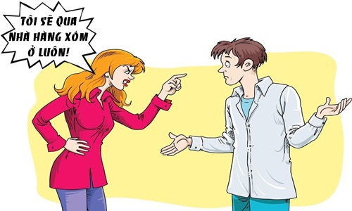 - Dạ gần nhà em có một cặp vợ chồng mới cưới. Hôm kia, lúc em chuẩn bị đi làm thì nghe cãi nhau to lắm, hình như về chuyện tên chồng lăng nhăng gì đó. Bỗng nhiên cô vợ hét to lên 'Anh mà còn đi với con đó, tôi qua nhà mấy ông hàng xóm ở luôn'...
