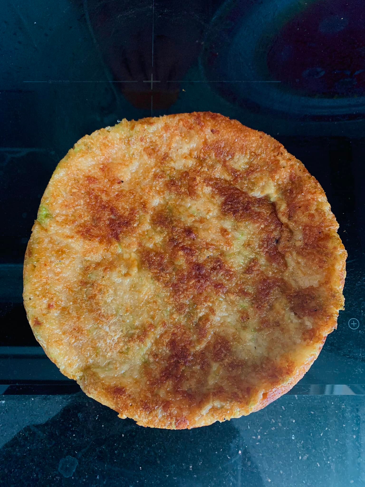 - Khi thấy bánh vàng giòn 1 mặt thì lật bánh, đun tiếp mặt còn lại.