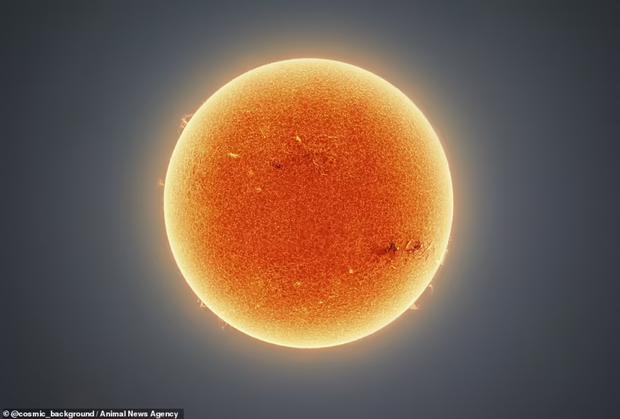 Bức ảnh chụp được chi tiết cả từng đốm và bề mặt Mặt Trời. Ảnh: Animal News Agency