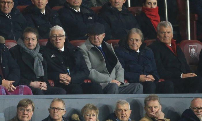 Trên khán đài sân Turf Moor hôm nay có cả sự xuất hiện của Sir Alex Ferguson (áo ghi). Ngài "Máy sấy tóc" đã không được ăn mừng chiến thắng của đội bóng cũ.