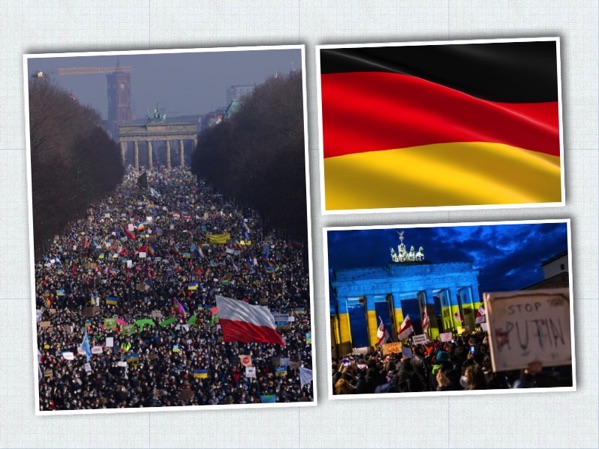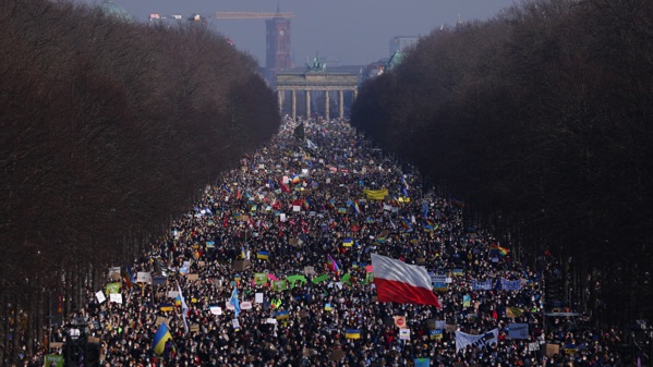 Hơn 100.000 người đã biểu tình ở Berlin vào Chủ nhật trong tình đoàn kết với Ukraine. Các chuyến tàu và giao thông dưới lòng đất đã bị gián đoạn tại một số khu vực của thủ đô nước Đức khi hàng nghìn người đổ về Cổng Brandenburg ở trung tâm Berlin, gần đại sứ quán Nga.