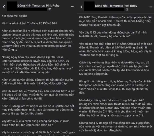 Mới đây, ca sĩ Đông Nhi đã vướng phải lùm xùm với FC của mình, điều này trở thành chủ đề nóng trên khắp các diễn đàn mạng xã hội. Cụ thể, trước đó trong group FC của Đông Nhi, có 1 admin kênh Youtube FC Đông Nhi đăng tải một bài viết chia sẻ về việc bị ekip của nữ ca sĩ “giành” kênh Youtube, đồng thời kích toàn bộ admin ra khỏi quyền quản trị của kênh.