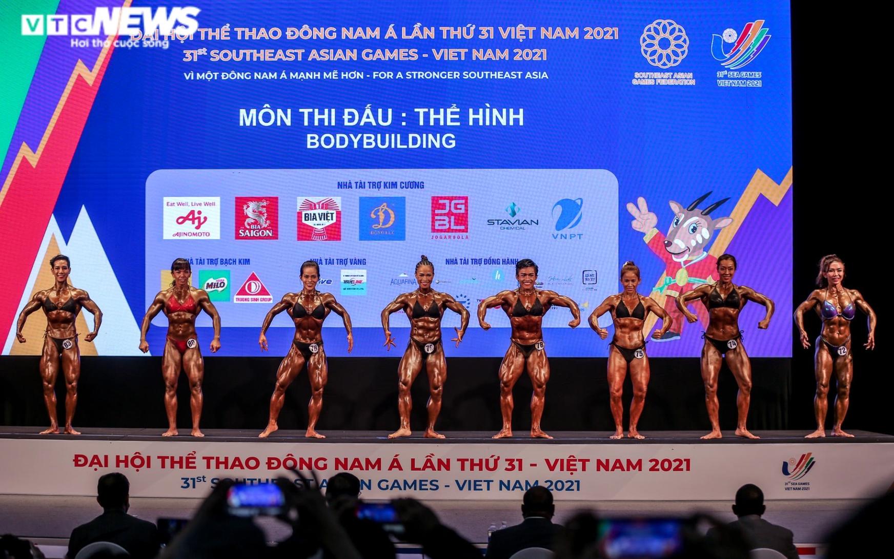 Chiều 15/5, Trung tâm huấn luyện và thi đấu Thể dục thể thao Việt Nam (Hà Nội) diễn ra vòng loại, bán kết và chung kết thể hình nữ tại SEA Games 31.