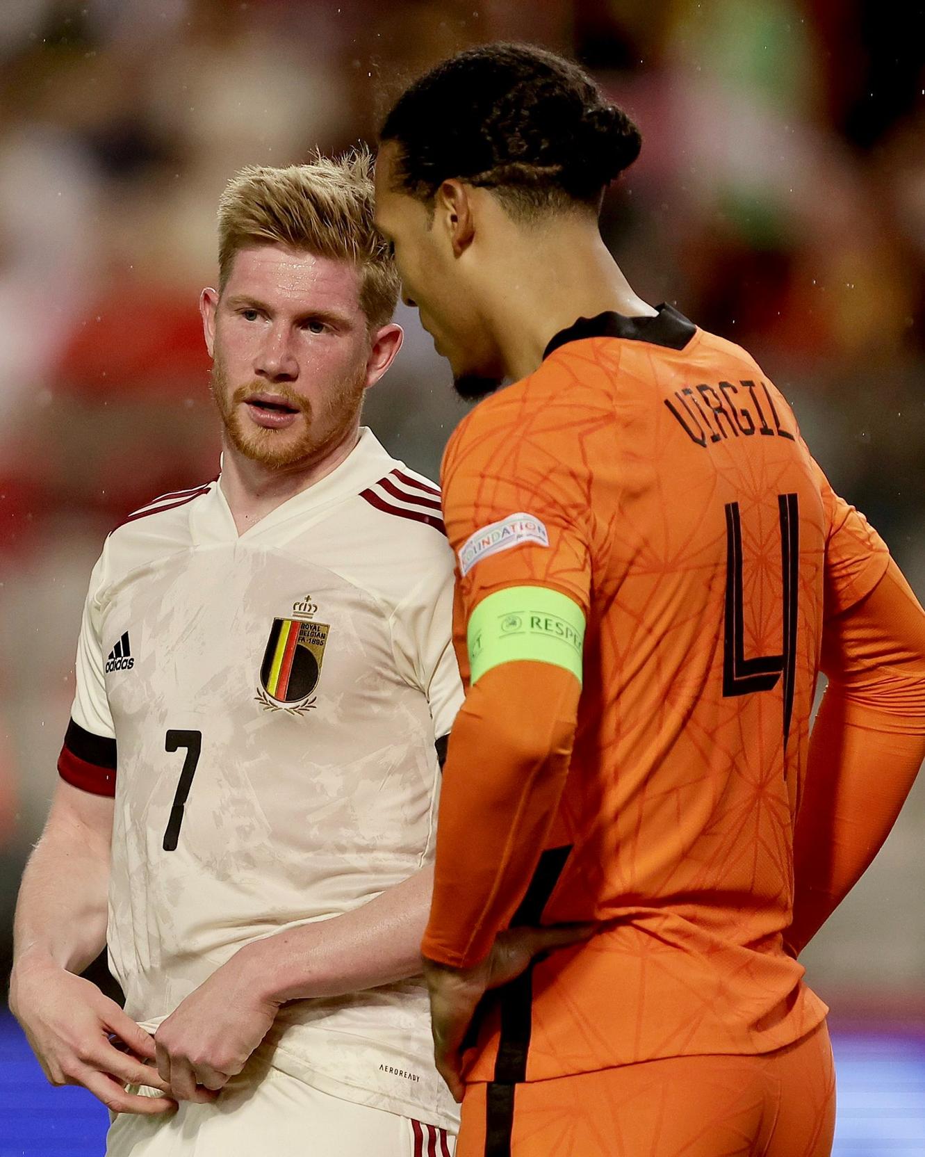 Van Dijk an ủi De Bruyne sau trận đấu. Ảnh: KNVB