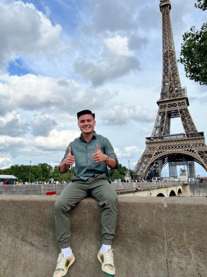 Quang Hải chụp ảnh khi tới Pháp ký hợp đồng hồi đầu tháng. Ảnh: FBNV