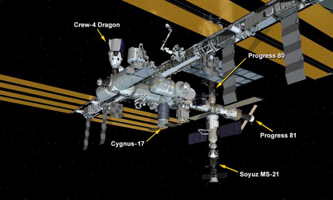 Các tàu vũ trụ đang ghép nối với trạm ISS. Ảnh: NASA