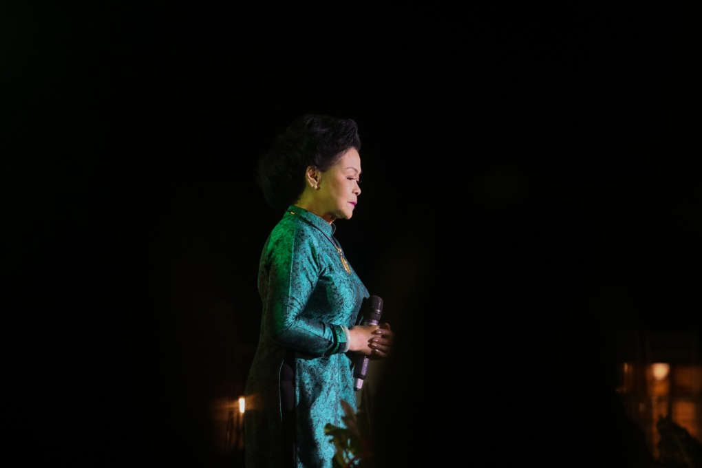 Ca sĩ Khánh Ly biểu diễn trong đêm live concert "Dấu chân địa đàng", nằm trong chuỗi show "Như một lời chia tay" tại Đà Lạt, ngày 25/6. Ảnh: Thành Nguyễn
