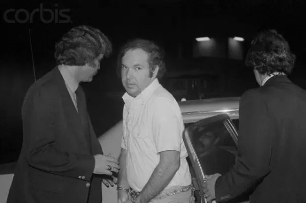 Bức ảnh Mark Stanley Rifkin bị hai đặc vụ FBI dẫn ra khỏi nhà, được người bạn thân chụp lại và bán cho các hãng tin với giá 250 USD. Ảnh: Jerri Wlliams