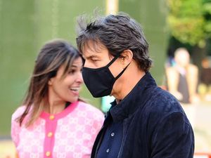 Tài tử Hollywood vẫn giữ phong cách giản dị quen thuộc với áo thun polo kết hợp quần jeans. Người phụ nữ đi cùng anh nổi bật với áo cardigan màu hồng của thương hiệu Gucci và quần jeans ống rộng. Đây là lần đầu tiên tài tử Tom Cruise đi cùng một người phụ nữ khác kể từ sau khi chia tay Hayley Atwell hồi tháng 6.