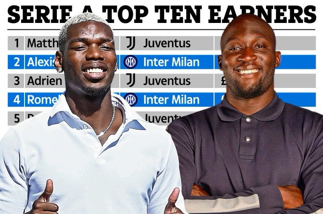 Theo Tancredi Palmeri, phóng viên của SportItalia và CNN, Pogba và Lukaku cùng hưởng lương 7,5 triệu USD mỗi mùa, tại Juventus và Inter. Con số này thua xa mức thu nhập khi cả hai còn thi đấu tại Ngoại hạng Anh.
