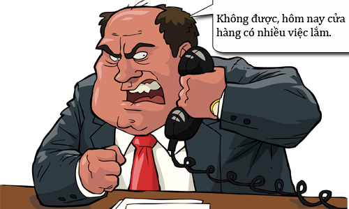 – Ông chủ ơi chỗ tôi ở hiện tại mưa to quá ngập hết rồi, giờ không có cách nào đến xưởng được. Ông cho tôi nghỉ hôm nay nhé!