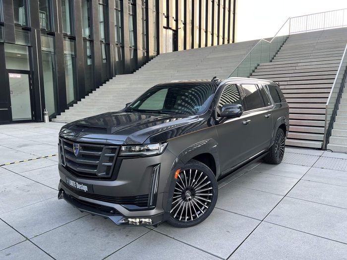 Larte Design đã thiết kế riêng cho Escalade bộ bodykit có tông màu tối và làm từ sợi carbon. Gói độ có tên gọi Esthete mang đến cho mẫu SUV sang trọng một vẻ ngoài hầm hố, cá tính hơn trước.