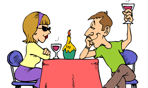 Khi người phục vụ đem món tráng miệng ra thì anh ta thấy người đàn ông đột nhiên cúi xuống rồi chui hẳn vào gầm bàn, tuy vậy người phụ nữ lại có vẻ như không hay biết chuyện đó. Người phục vụ liền nói với bà ta: