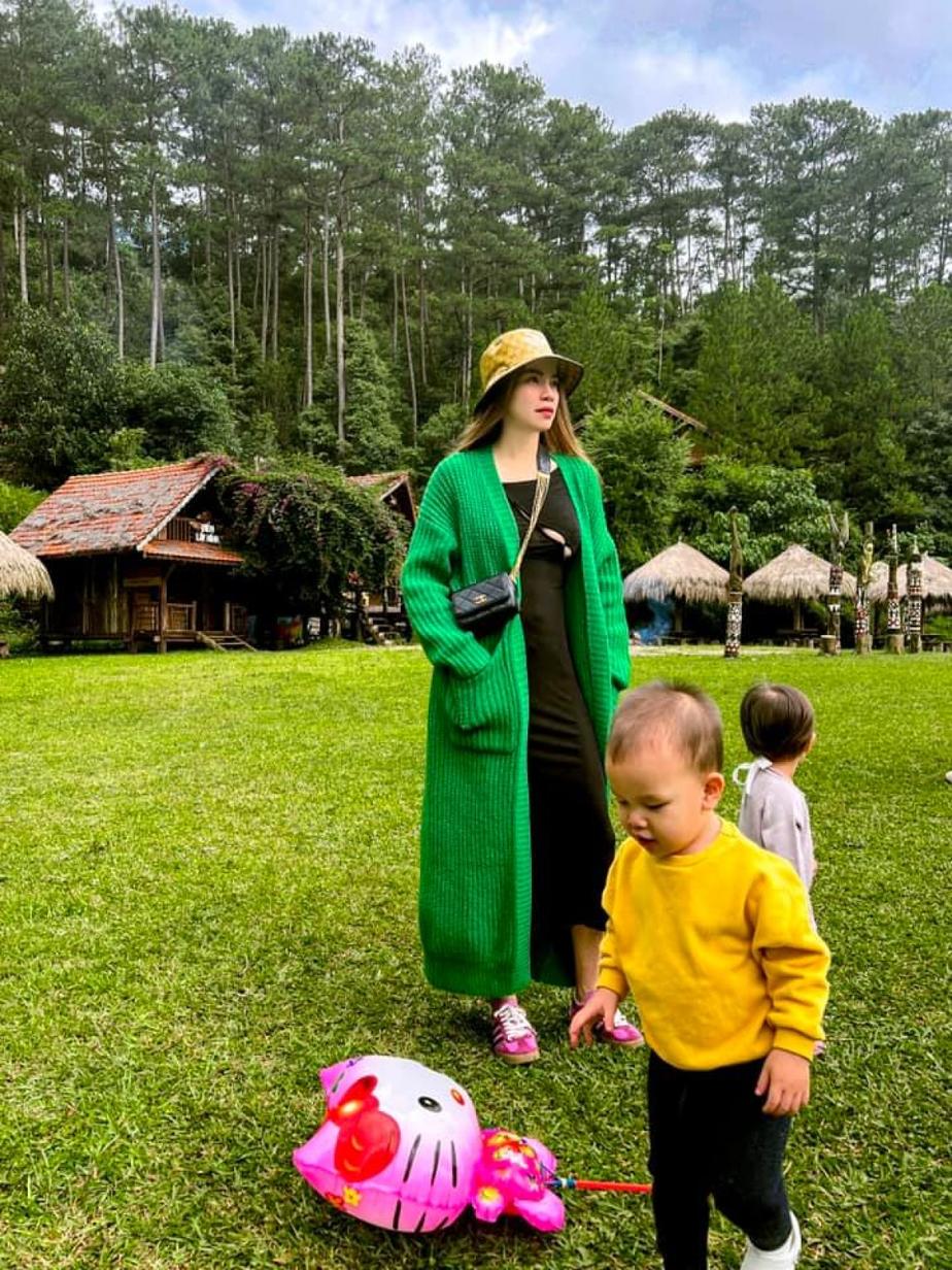 Áo len cardigan xanh lá cây dài chấm gót, giày màu hồng rực, Hồ Ngọc Hà thắp sáng không gian bởi cách phối đồ táo bạo.
