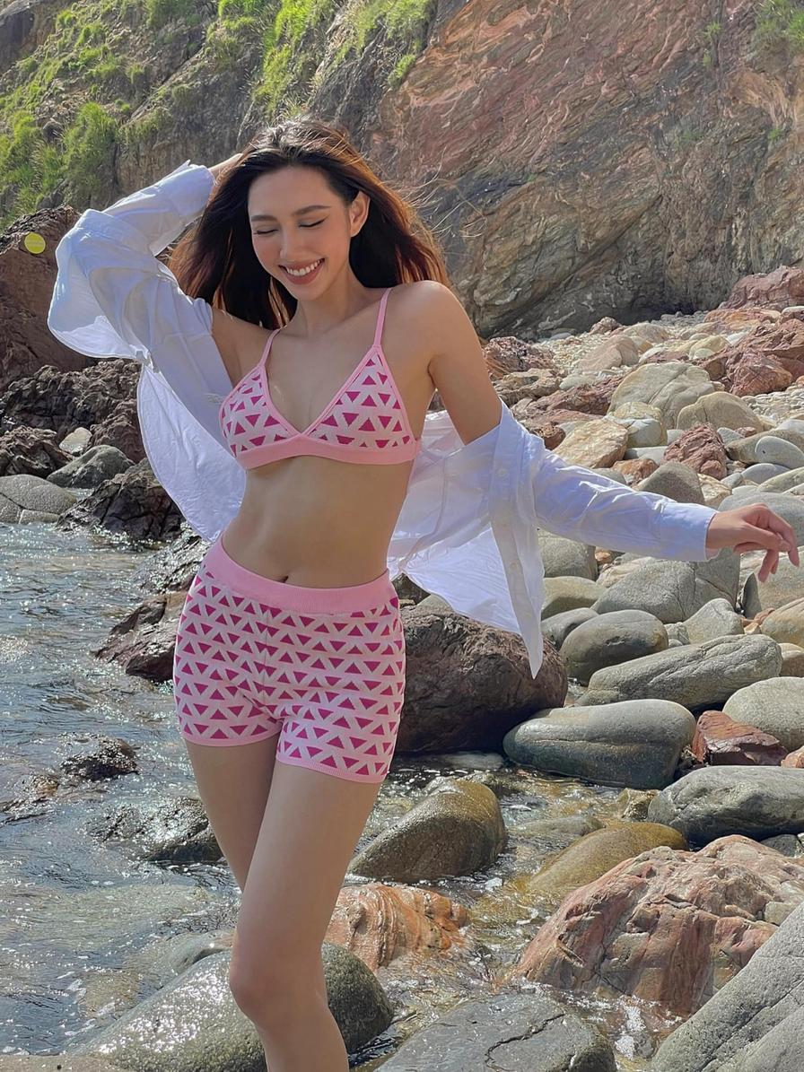 Mỹ nhân sinh năm 1998 diện trang phục bikini nổi bật khoe trọn vóc dáng quyến rũ và nóng bỏng trên biển. Người đẹp cũng không ngại dầm mình dưới làn nước để có những bức hình đẹp nhất.