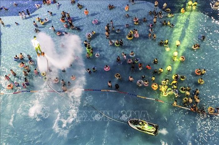 Người dân tránh nóng trong công viên nước tại tỉnh Giang Tô, Trung Quốc, ngày 18/7/2022. Ảnh minh họa: AFP/TTXVN