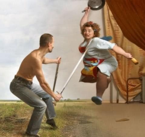 Bà vợ sợ xanh mặt, hoảng loạn hét lên: - Bớ người ta, cứu, cứu, chồng tôi điên rồi, ngáo đá rồi...