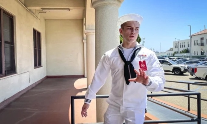 Thủy thủ Ryan Sawyer Mays tại Căn cứ Hải quân San Diego hôm 17/8. Ảnh: AP.