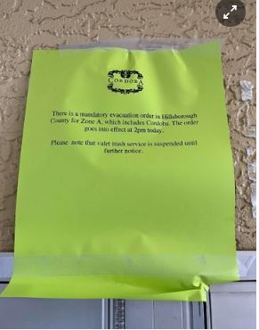 Thông báo lệnh sơ tán của chính quyền nơi chị Vũ Hường sinh sống. Ảnh: NVCC.