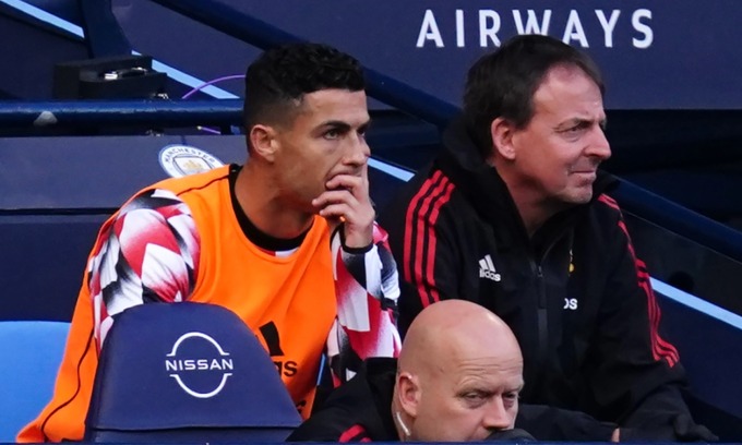 Old  Arrow Ronaldo trông thất thần khi dự bị ở derby Manchester