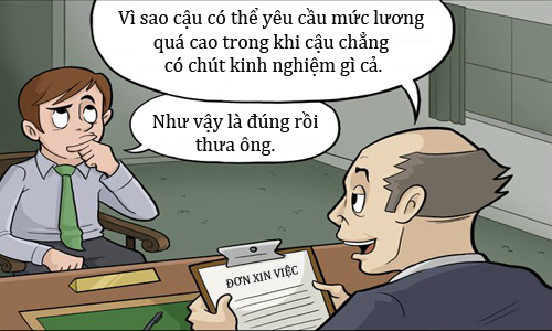 – Tại sao cậu có thể yêu cầu một mức lương cao như vậy trong khi cậu c̣n chẳng có một chút kinh nghiệm nào cả?!