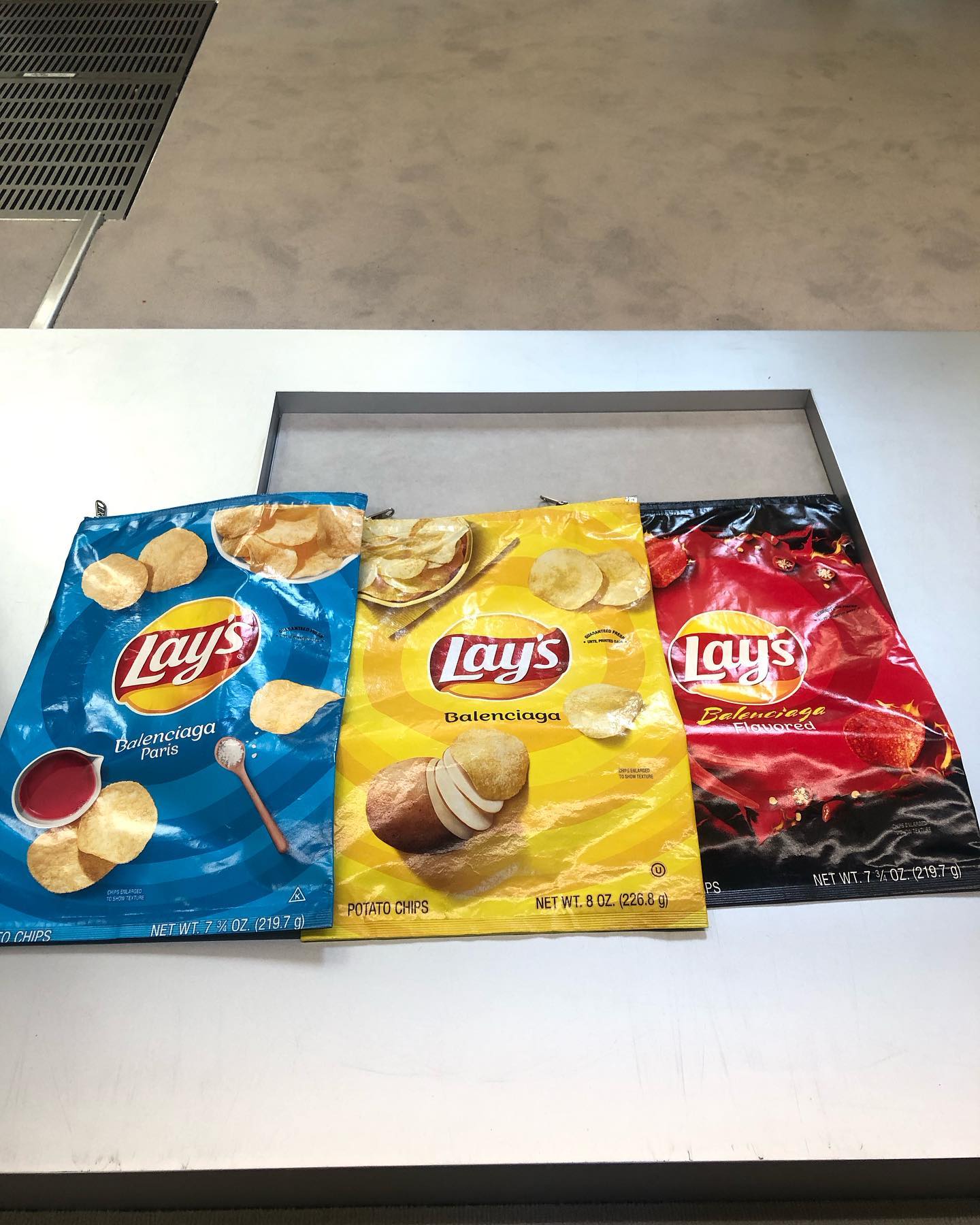 Không rõ nguồn cảm hứng cho món phụ kiện thời trang chắc chắn sẽ gây sốt này thực sự là gì, nhưng những thiết kế tương tự đã được tìm thấy trên AliExpress và Demna gần đây đã được phát hiện mang một chiếc túi đeo khoai tây chiên thực tế của Lay tại triển lãm tốt nghiệp Antwerp Royal Acadamy of Fine Arts vào hồi tháng 6.