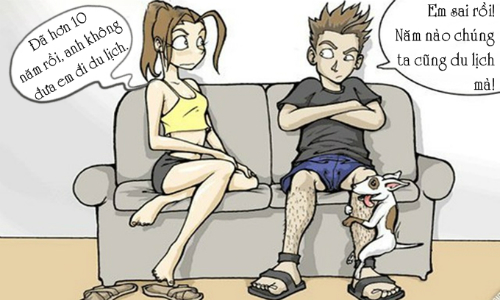 - Em nói vậy là sai rồi! Mỗi năm vợ chồng mình đều đi du lịch dài ngày!
