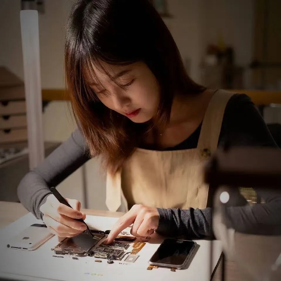 Công việc Lin Xi đang làm chính xác là kết hợp và thiết kế lại các linh kiện của điện thoại di động để trở thành một tác phẩm nghệ thuật treo tường, giúp các thiết bị điện tử cũ kỹ có diện mạo mới, theo yêu cầu.