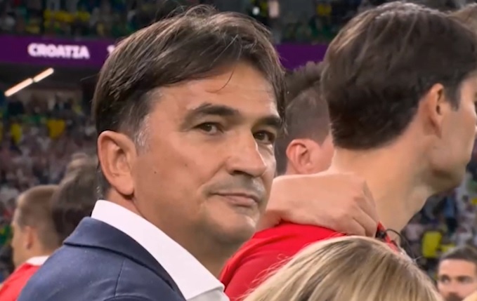 HLV Croatia cười trong loạt luân lưu. Ông Zlatko Dalic có tâm lý thoải mái dù đang phải phân định thắng thua với Brazil ở loạt luân lưu cân não vào rạng sáng 10/12 (giờ Hà Nội).