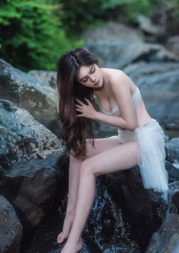 Chất liệu vải xuyên thấu giúp cho các cô nàng khoe được hình thể quyến rũ bên dòng suối.