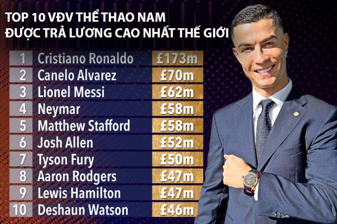 Điều đó có nghĩa là Ronaldo có thể kiếm được nhiều hơn 100 triệu bảng so với nam VĐV kiếm được nhiều tiền nhất trong tất cả các môn thể thao.