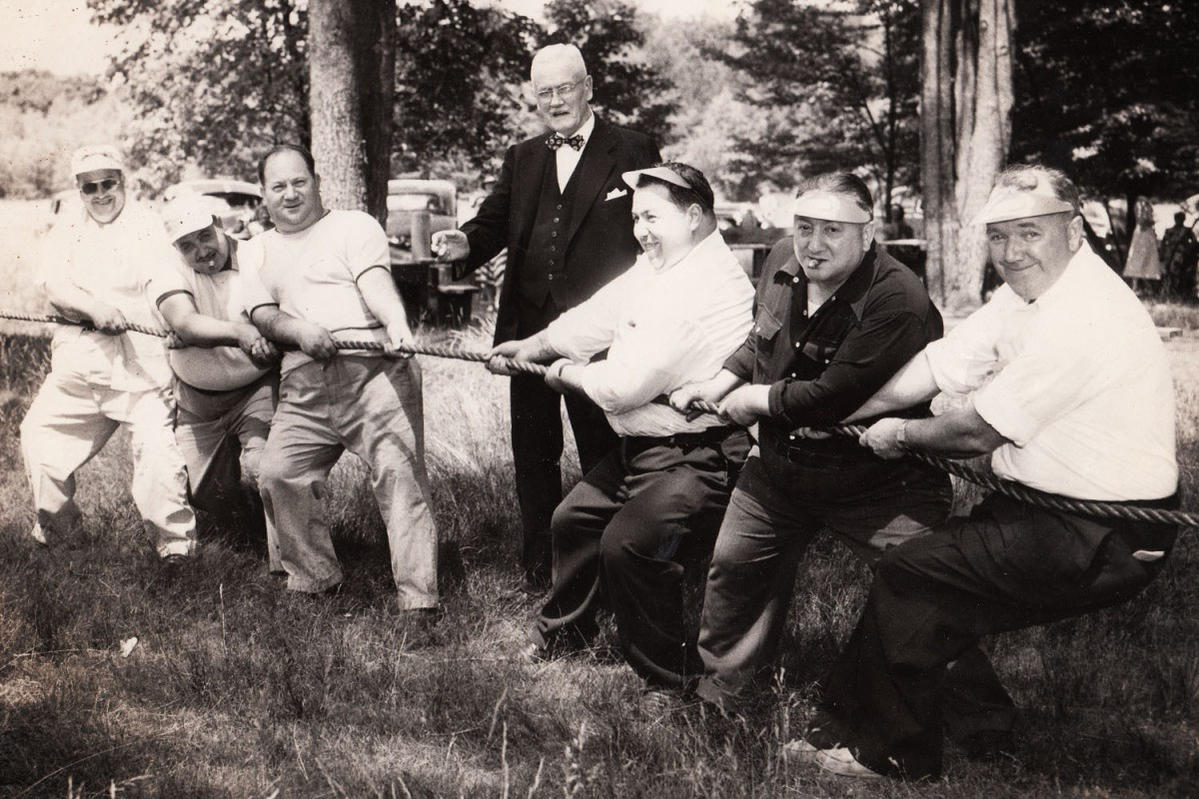 Thành viên CLB đàn ông béo bang Massachusetts chơi kéo co. Ảnh: CHCC