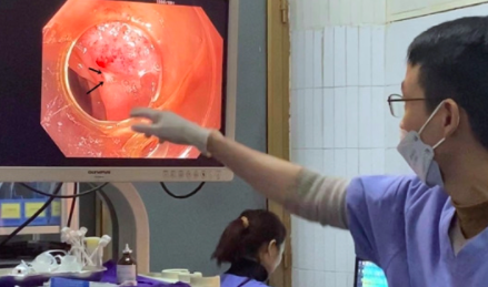 Kíp bác sĩ Khoa Thăm dò chức năng của Bệnh viện Đa khoa tỉnh Quảng Ninh tiến hành nội soi kiểm tra và phát hiện một dị vật là tăm tre nhọn, một đầu cắm xuyên niêm mạc ruột, một đầu tự do, xung quanh có dịch mủ chảy.