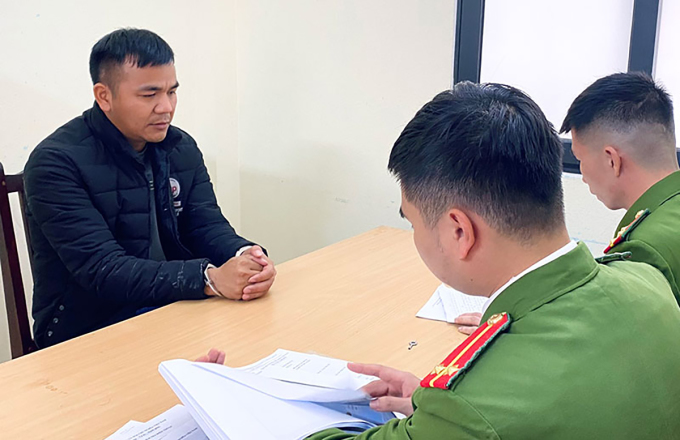 Vi Văn Đức tại cơ quan điều tra. Ảnh: Công an cung cấp