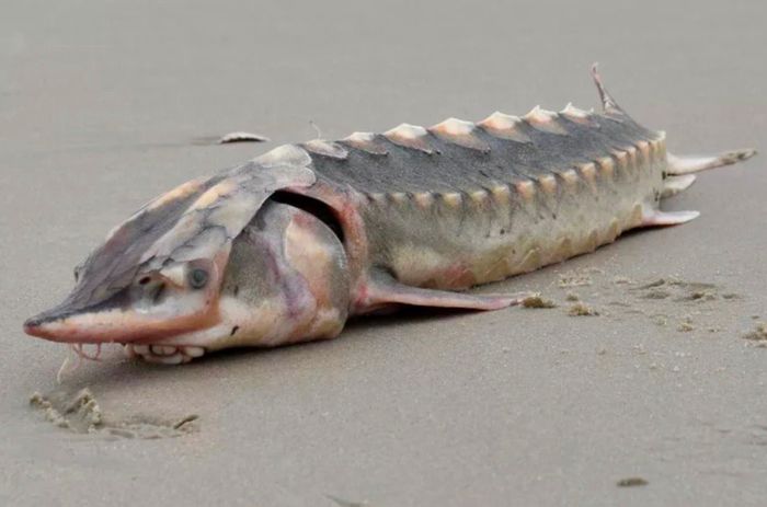 Con cá tầm Đại Tây Dương đã chết được nhà tự nhiên học kiêm nhiếp ảnh gia Allen Sklar phát hiện trên đảo Assateague, một dải đất dài 60 km dọc theo bờ biển Maryland và Virginia. Sklar đã chụp một số hình ảnh về con cá dài khoảng 1 mét này.