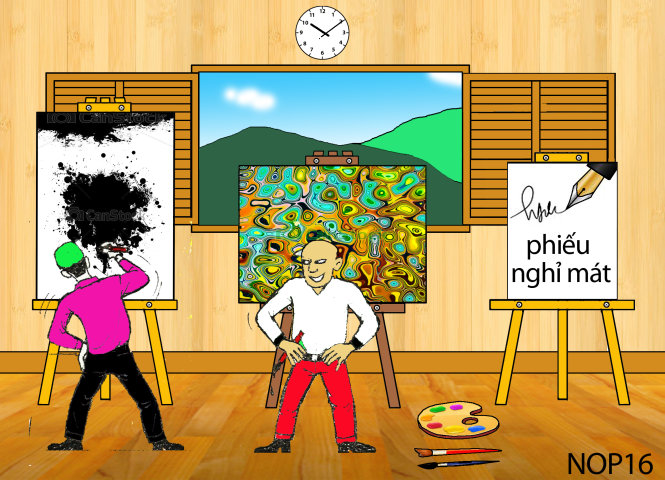 Tôi nh́n xung quanh, không thấy ai chơi bài như mọi khi mà tất cả đang chăm chú trước giá vẽ. Khi đoàn thanh tra tới chỗ tôi, họ im lặng một lúc rồi một người hỏi: