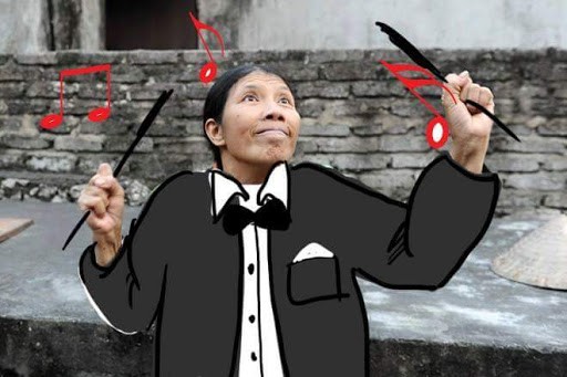 - Ông ơi, cái ông đứng qua lưng vào khán giả là ai thế?