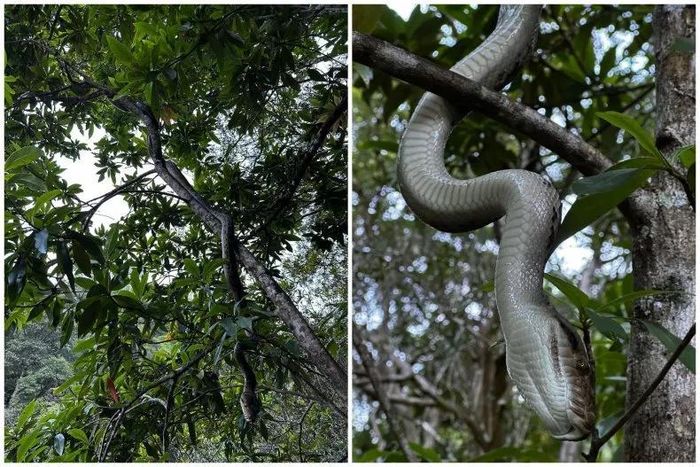 Zayne nói: “Khi chúng tôi về thì gặp một cặp vợ chồng khác và họ chỉ ra con trăn gấm đang treo trên cây phía trên lối đi, chúng tôi ước tính nó dài khoảng 2,5 m. Tôi cho rằng nó đang săn dơi”.