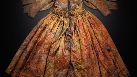 Một chiếc váy gấm hoa bằng lụa sa tanh là một trong những món đồ được trục vớt từ xác tàu đắm Palmwood, ngoài khơi đảo Texel ở Biển Bắc. – Nguồn: CNN.