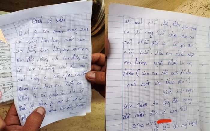 Bức thư tuyệt mệnh này có nội dung: "Gửi vợ yêu! Khi anh không c̣n nữa, mong em cố gắng làm lụng nuôi con… Hẹn em kiếp sau, chúng ta sẽ gặp lại".