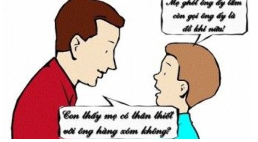 - Con ở nhà có thấy mẹ thân thiết với ông Tèo hàng xóm không?
