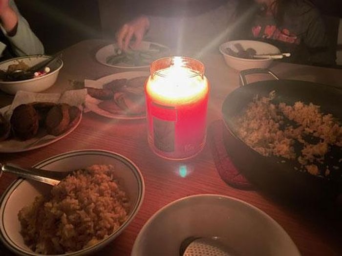 Cả nhà ăn cơm quây quần dưới nến, không có thiết bị điện tử nào can thiệp. Ăn xong cùng chơi trốn tìm, chơi tạo bóng trong ánh đèn, hứng lên thì ra đường ngắm sao. Sau cơn bão, trời đêm đầy sao và mây trắng xóa... rất đẹp. Đã gần hết tháng 3 mà năm nay vẫn rất lạnh, ban đêm chỉ 5-7 độ C nhưng cả nhà ôm nhau ngủ cũng ấm, lại thêm một kỷ niệm đẹp!