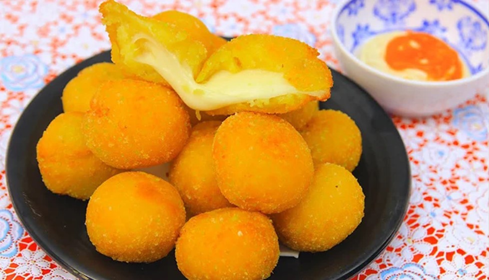 Phần bánh được chiên vàng giòn với vị ngọt bùi tự nhiên từ khoai lang, vị béo tan chảy từ phần phô mai đã tạo nên một món ăn hấp dẫn, thơm ngon.