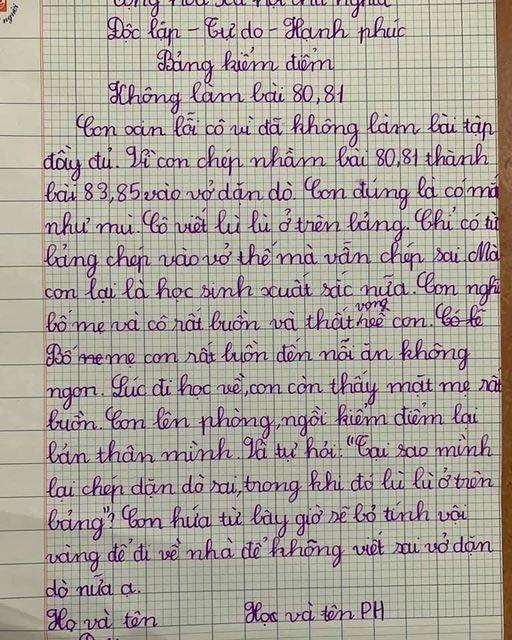 Old  Default Bị bắt viết kiểm điểm vì tội thiếu bài tập, cô bé 'học sinh xuất sắc' khiến giáo viên không ngậm nổi miệng với lời lẽ dẻo như