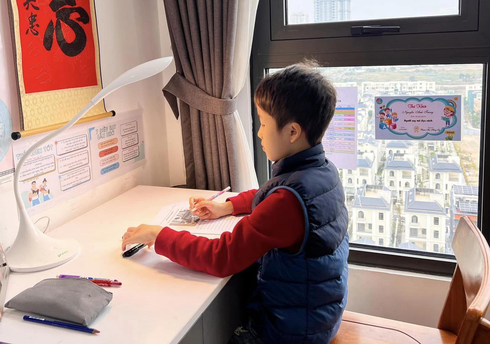 “Để không phải nhắc nhở Bon, mình chụp ảnh rồi dán lên tường những việc cần làm để con nhìn vào đó. Nhờ có hình ảnh ấy nhắc giúp nên có nhiều việc mình không cần nói quá nhiều với con”, chị Thu nói.