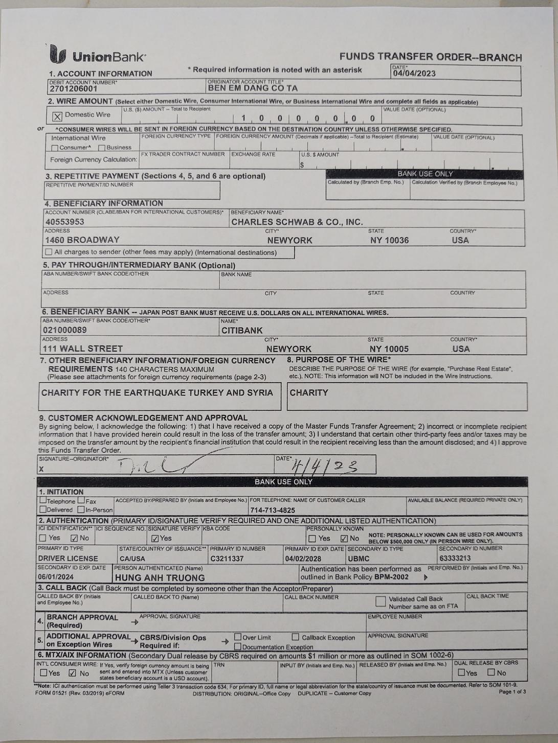 Vào ngày Chủ Nhật 19 tháng 02, 2023 vừa qua, quỹ Bên Em Đang Có Ta cùng với sự hợp tác của Hội Đồng Liên Tôn Hoa Kỳ, đã tổ chức một buổi gây quỹ trực tiếp trên đài truyền hình SBTN bắt đầu từ lúc 1:30PM chiều giờ California, để giúp nạn nhân động đất tại Thổ Nhĩ Kỳ và Syria. Chương trình kéo dài đến 8 giờ tối. Sau đó chương trình đã được phát lại mỗi ngày trong 3 tuần. Tính đến ngày thứ Ba 4 tháng 04 2023, tổng số tiền mà quỹ Bên Em Đang Có Ta nhận được từ quý khán giả SBTN và Hội Đồng Liên Tôn Hoa Kỳ là $249,621.05 Mỹ Kim. Quỹ Bên Em Đang Có Ta quyết định bỏ thêm vào $378.95 Mỹ Kim cho tròn $250,000 Mỹ Kim. Sáng ngày thứ Ba 4 tháng 04, 2023, quỹ Bên Em Đang Có Ta đã gởi $150,000 Mỹ Kim đến tổ chức Doctor Without Border (DWB). DWB cho biết họ sẽ match $3 Mỹ Kim cho mỗi Mỹ Kim nhận được. Bên Em Đang Có Ta đã gởi $100,000 Mỹ Kim đến tổ chức Turkish Philanthropy Fund thông qua Charles Schwab. Charles Schwab cho biết họ sẽ match $1 Mỹ Kim với $1 Mỹ Kim. SBTN và quỹ Bên Em Đang Có Ta xin được gởi lời cám ơn đến Hội Đồng Liên Tôn Hoa Kỳ và quý khán giả SBTN trong công tác nhân đạo nhằm một phần nào xoa dịu nổi đau thương và mất mát của các nạn nhân trong vụ động đất tại Thổ Nhĩ Kỳ và Syria