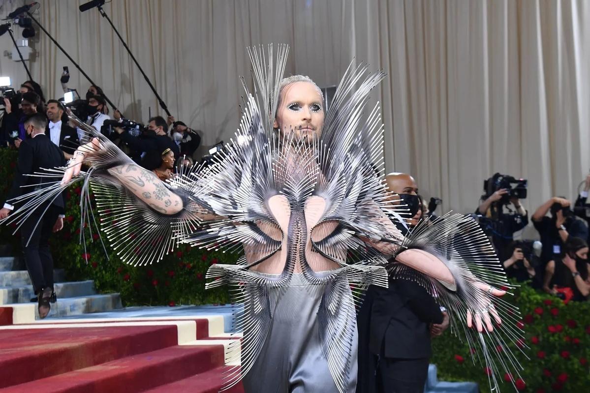 Met Gala năm ngoái có chủ đề "Gilded Glamour" (tạm dịch: Hào quang mạ vàng) - tôn vinh vẻ đẹp của sự hào nhoáng, xa xỉ và hưng thịnh của nền thời trang Mỹ, nhưng Fredrik Robertsson lại xuất hiện với vẻ ngoài như sinh vật biển. Chẳng những lạc đề trong trang phục thảm họa, ngôi sao người Thụy Điển còn bị nhầm là Jared Leto. Ảnh: Vulture.