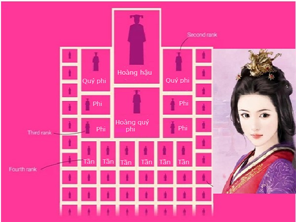 Về cơ bản, phân cấp thứ bậc trong hậu cung của Hoàng đế Trung Quốc sẽ như sau: Hoàng hậu dĩ nhiên chiếm giữ vị trí số 1 với quyền lực cao nhất, thống lĩnh hậu cung. Dưới Hoàng hậu là tập đoàn Phi tần – đứng đầu là Hoàng quý phi, thường được gọi là Phó hậu – chính nhất phẩm. Dưới Hoàng quý phi là Quý phi – chính nhị phẩm, hai người tại vị.