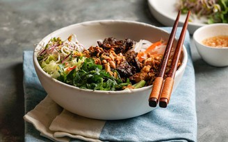 Bún thịt nướng (43), là sự kết hợp của thịt heo nướng ướp, bún gạo, rau xanh tươi và các loại rau thơm. Các thành phần thường được đặt trong một tô và sau đó ăn cùng nước chấm - một loại nước mắm pha với chanh đường.