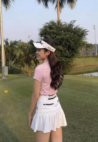 Golf đang là bộ môn thể thao hot được nhiều chị em Việt yêu thích, Đỗ Hà cũng không ngoại lệ. Cô diện áo thun hồng pastel phối với chân váy xòe, xếp ly, khoe khéo đôi chân dài 1m11 trên sân chơi "nhà giàu". Dù mới chơi golf nhưng Đỗ Hà vẫn nhận được nhiều lời khen ngợi nhờ khéo mặc trang phục tôn hình thể.